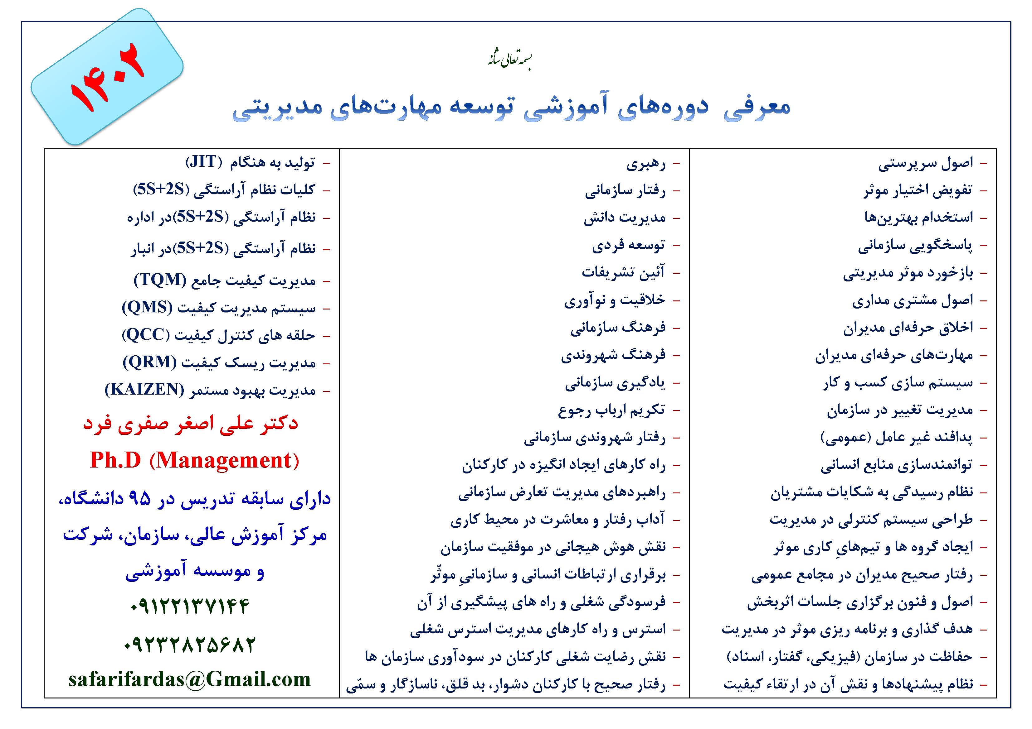 پایگاه اطلاعرسانی فعالیتهای علمی و آموزشی دکتر علی اصغر صفری فرد (Ph.D)