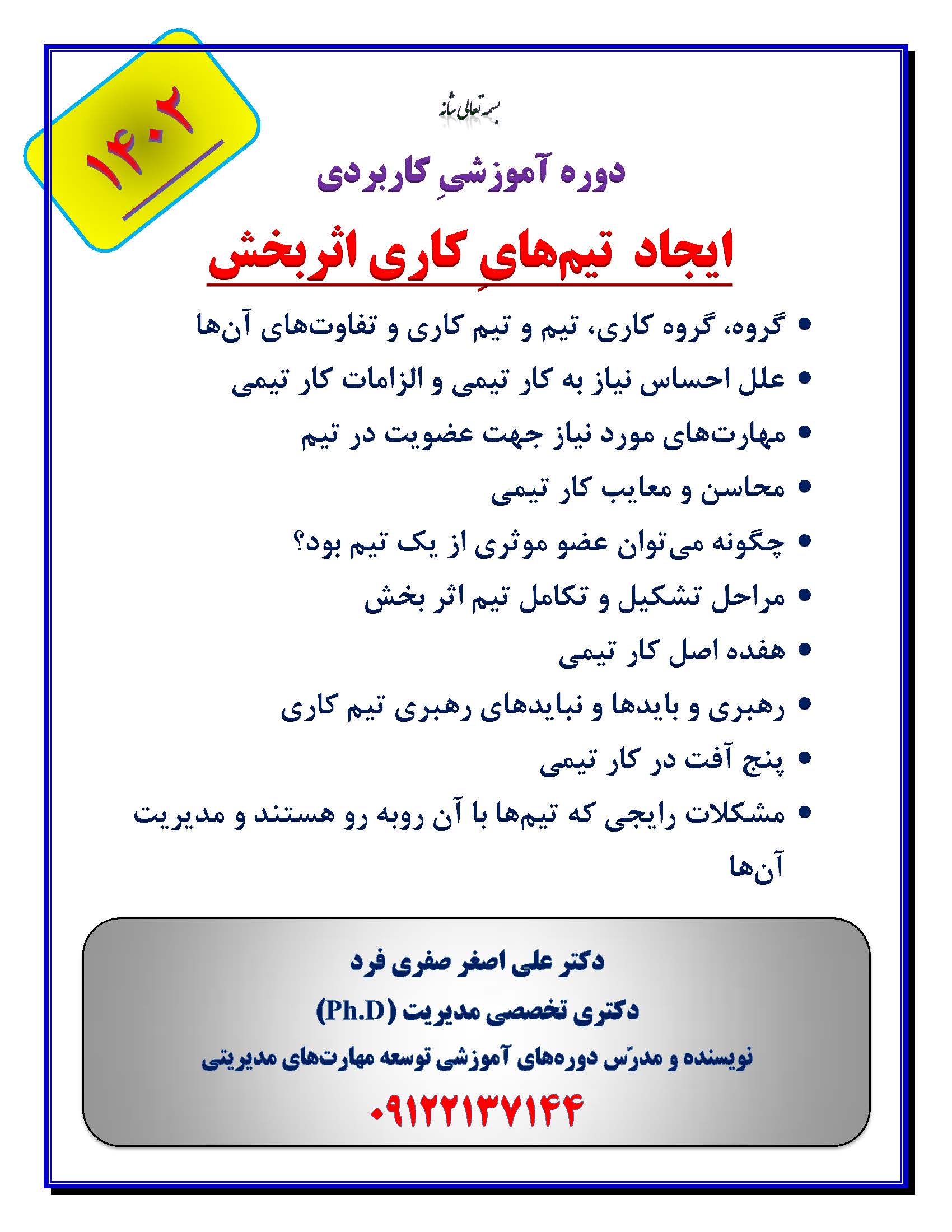 دوره آموزشی ایجاد تیم های کاری اثربخش