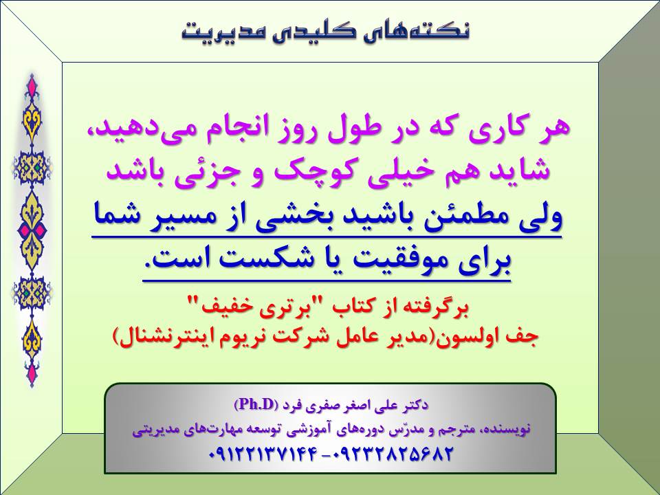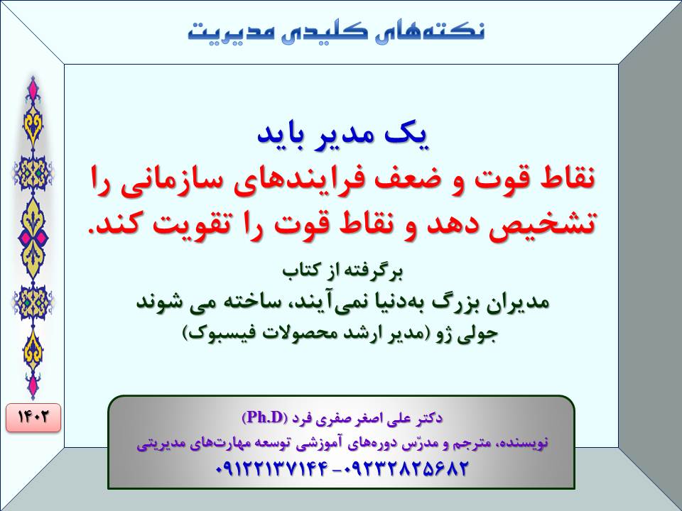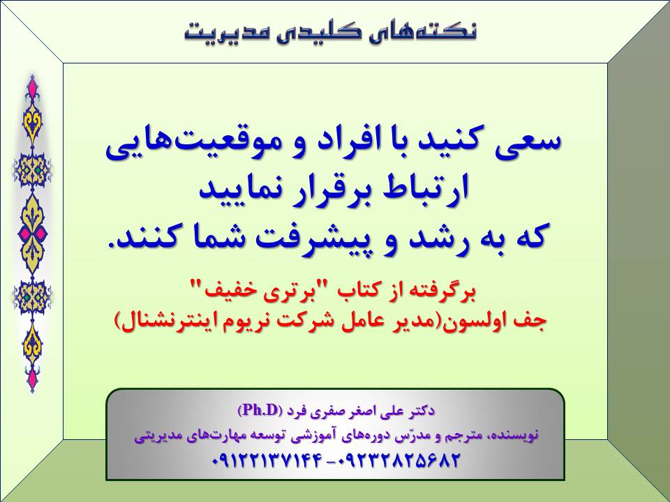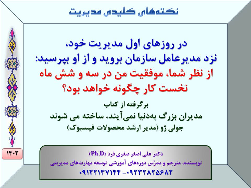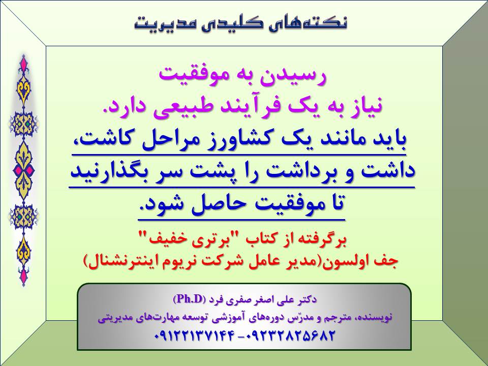 برگرفته از کتاب "مدیران، بزرگ به دنیا نمی آیند ساخته می شوند"