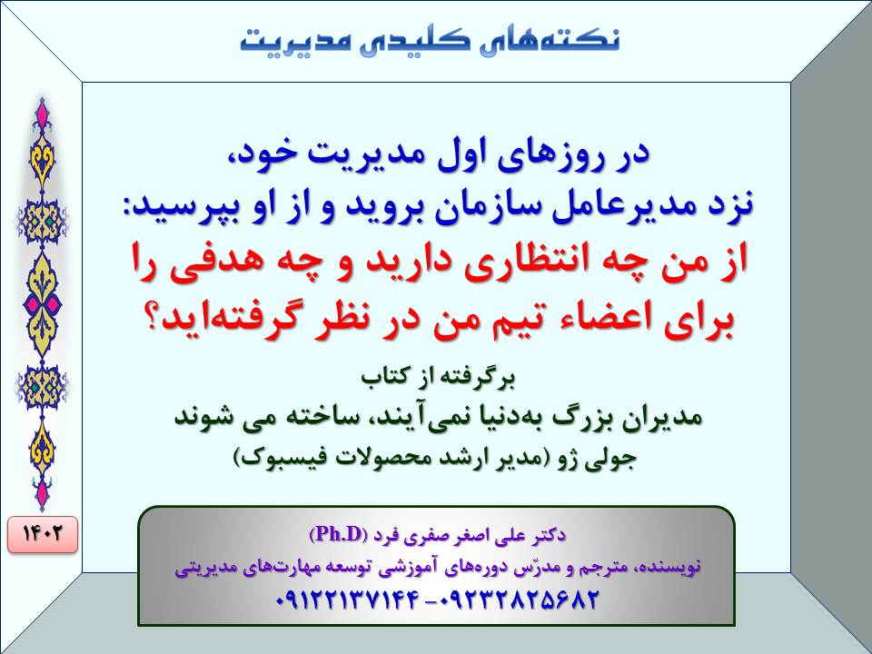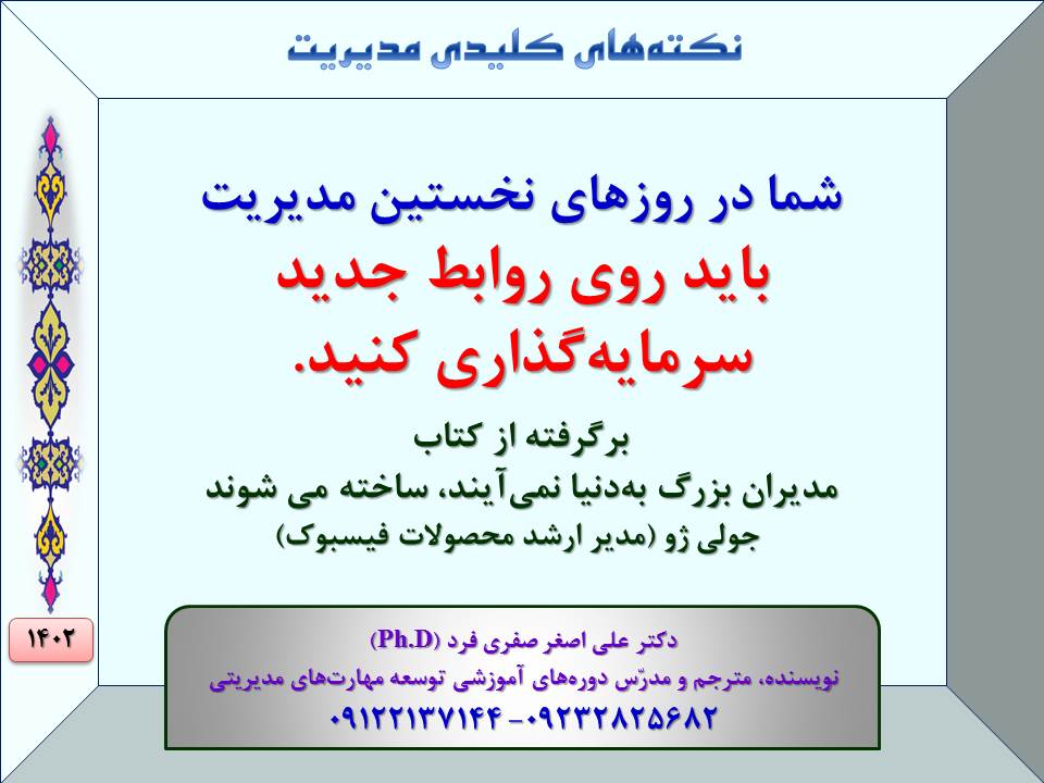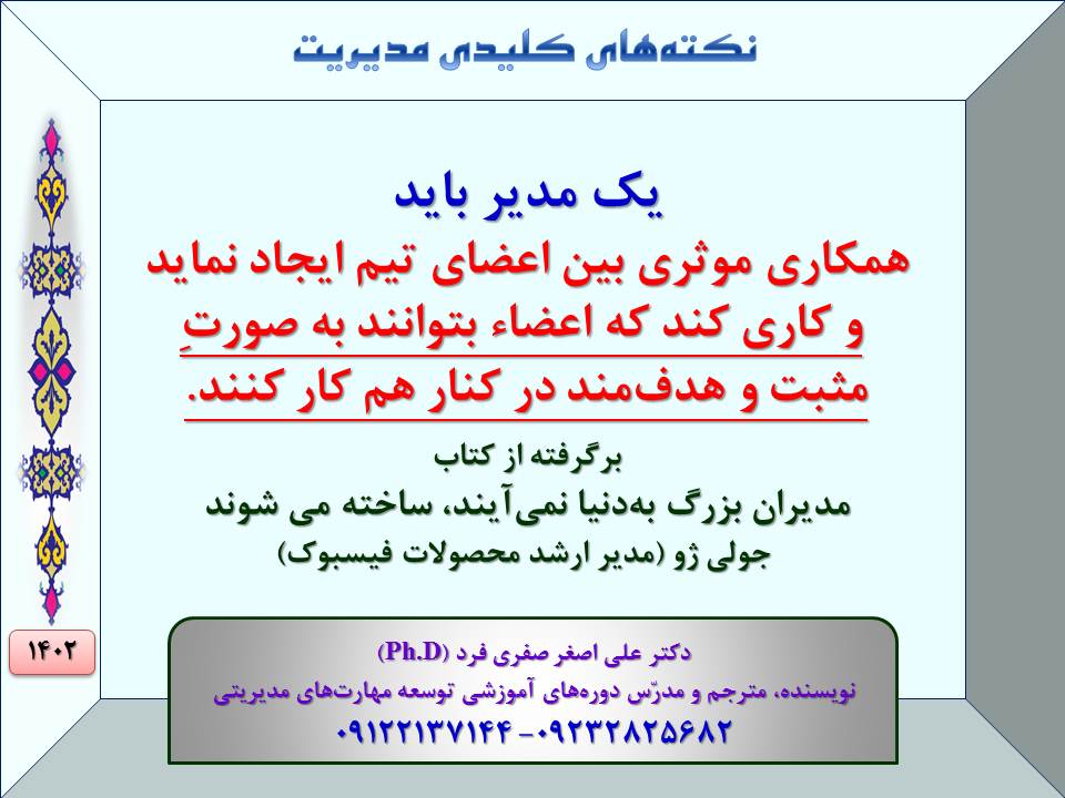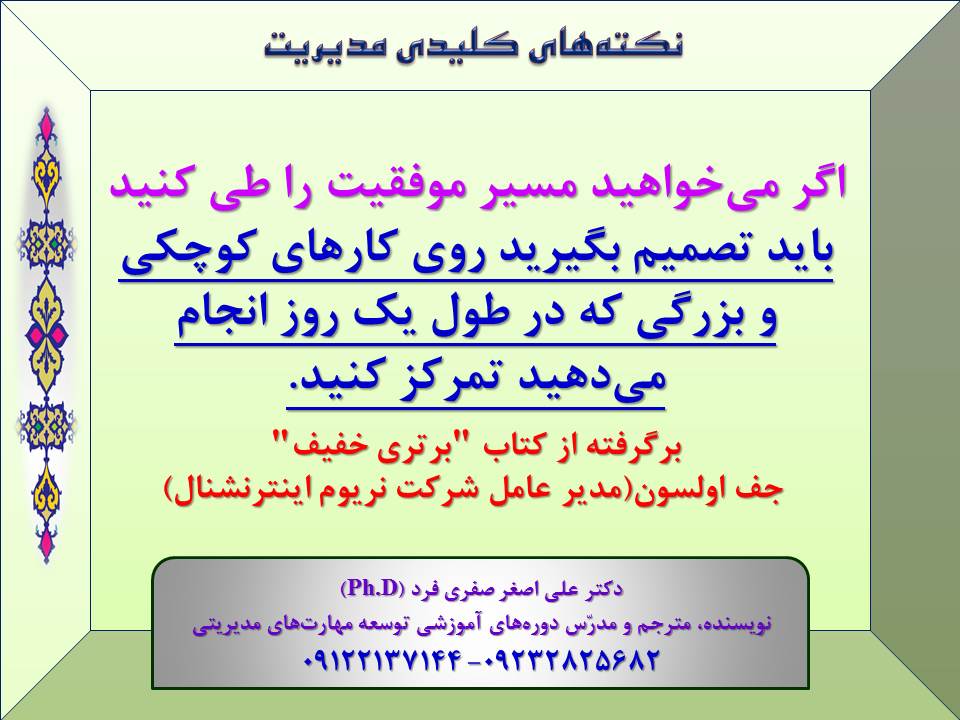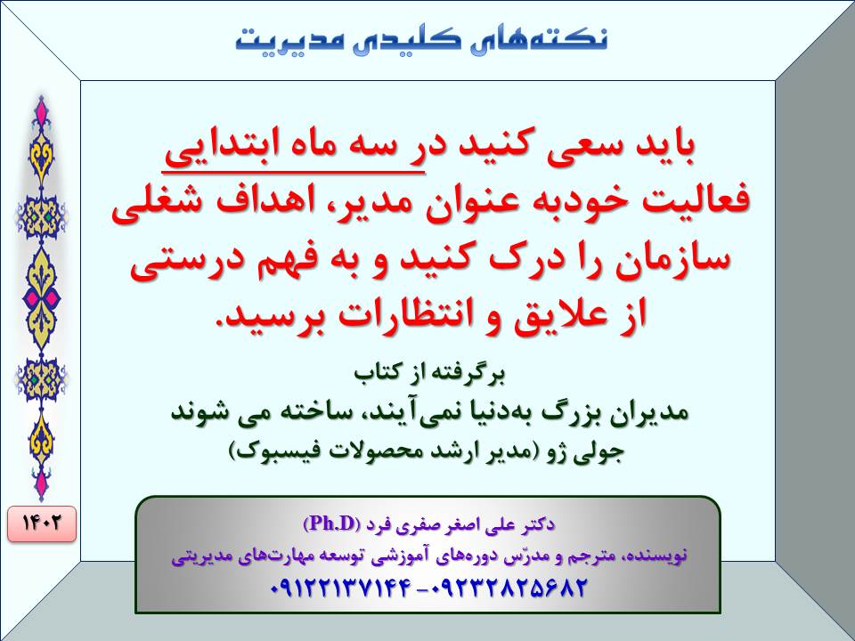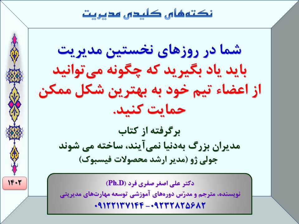 برگرفته از کتاب "مدیران، بزرگ به دنیا نمی آیند ساخته می شوند"