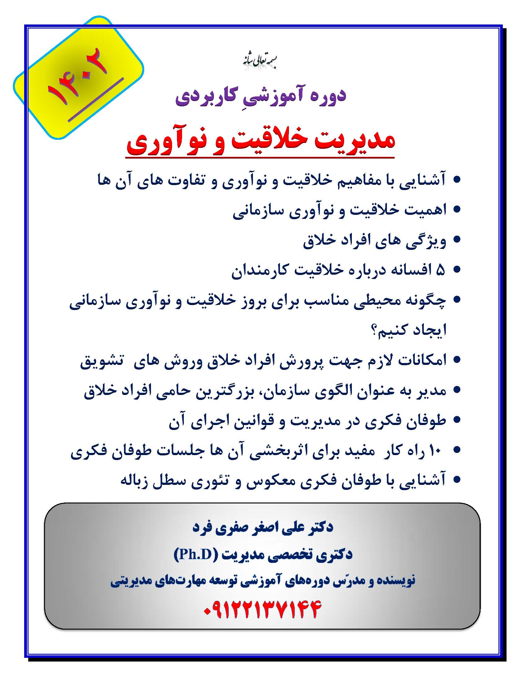 دوره آموزشی مدیریت خلاقیت و نوآوری