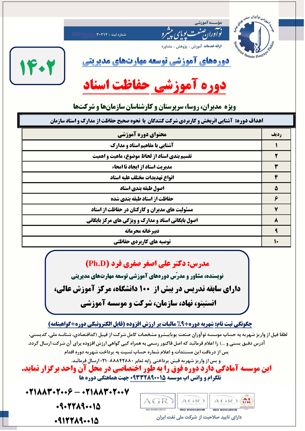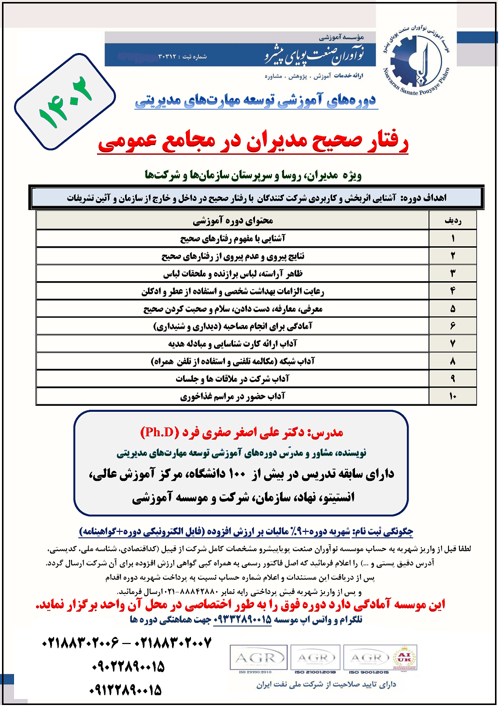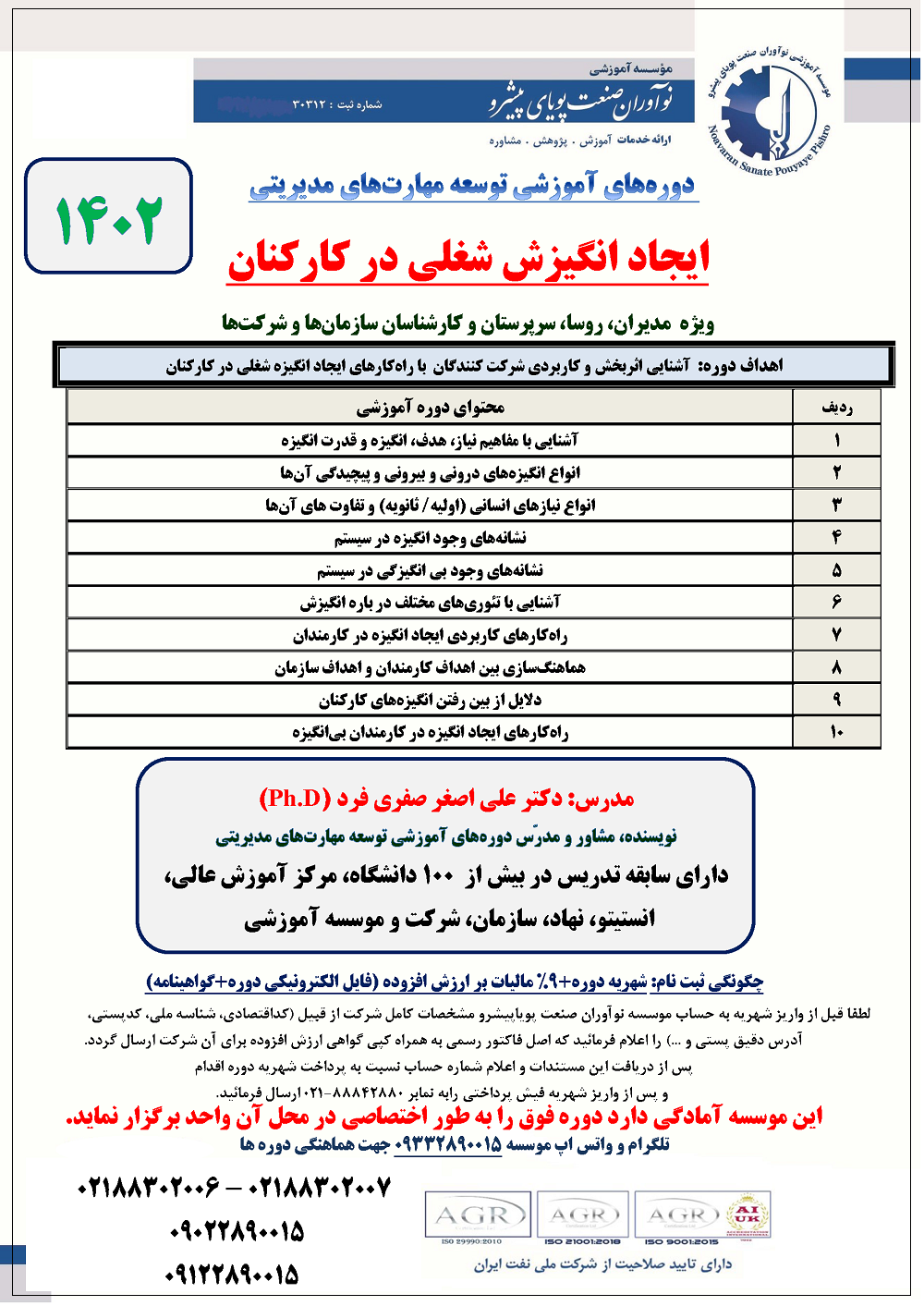 گالری تصاویر دورههای آموزشی دکتر علی اصغر صفری فرد (Ph.D)