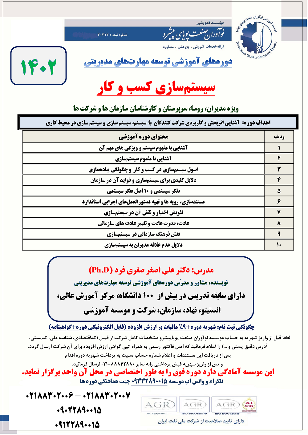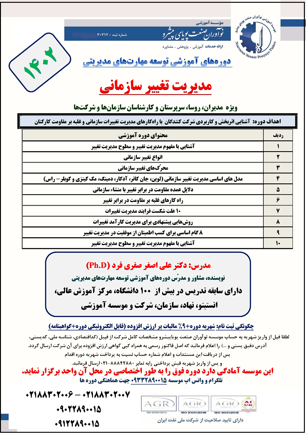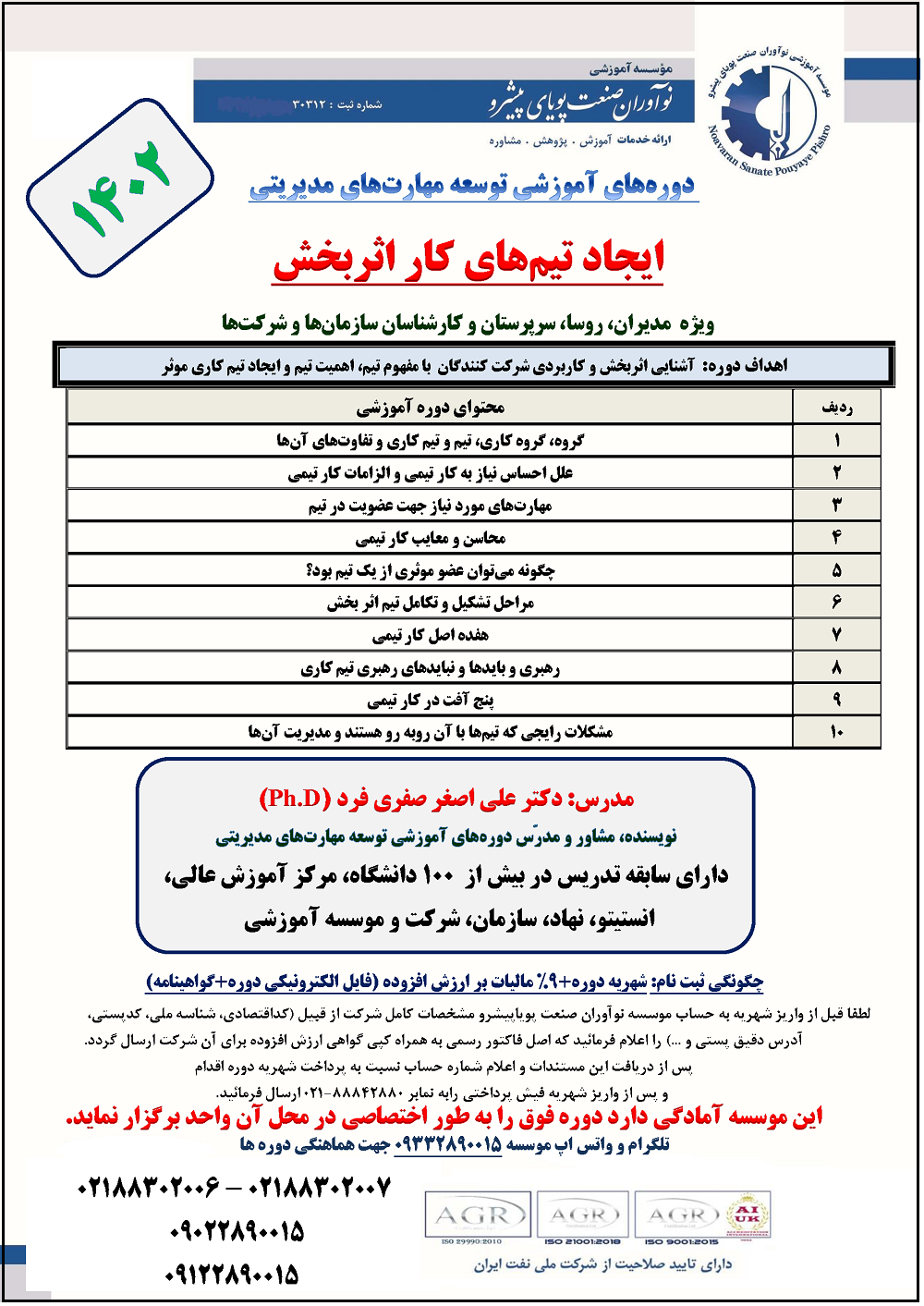 گالری تصاویر دورههای آموزشی دکتر علی اصغر صفری فرد (Ph.D)