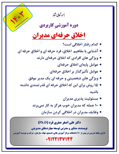 دوره آموزشی "اخلاق حرفهای مدیران"