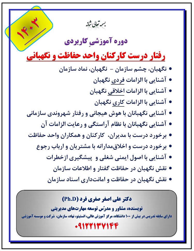 معرفی دوره آموزشی رفتار درست کارکنان واحد حفاظت و نگهبانی