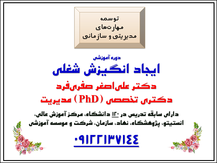 - آشنایی با مفاهیم نیاز، هدف، انگیزه و قدرت انگیزه