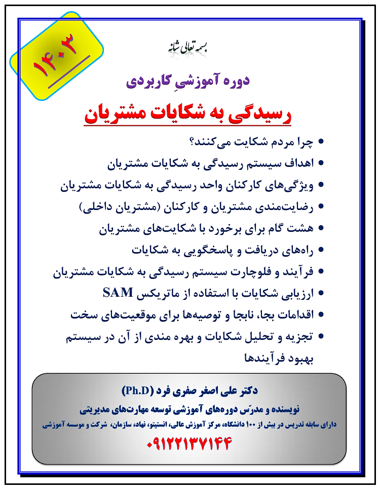 معرفی دوره آموزشی رسیدگی به شکایات مشتریان 1403