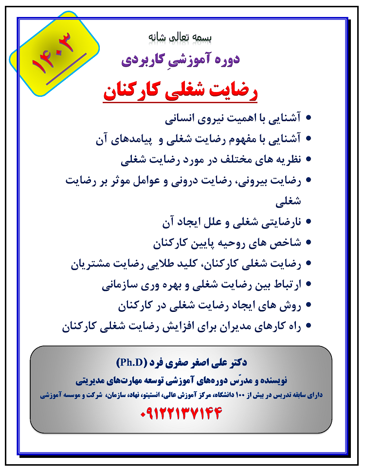 معرفی دوره آموزشی رضایت شغلی کارکنان 1403