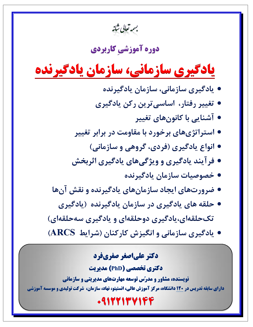 تماس جهت برگزاری دوره آموزشی "یادگیری سازمانی، سازمان یادگیرنده"